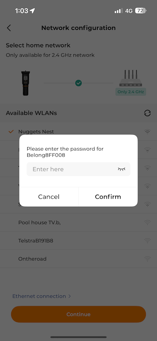 If the popup doesn’t appear, manually open your phone’s Wi-Fi list and connect to the SG-XXX network that matches your inverter’s serial number.