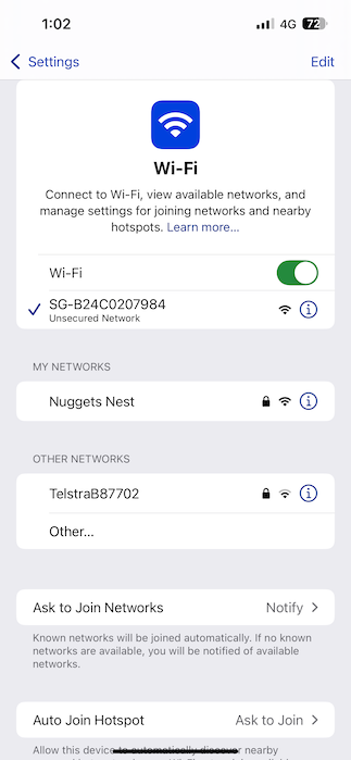 When prompted, tap Join to connect to the local Sungrow network (SG-XXX).